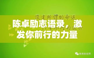 陈卓的励志语录充满了智慧和力量,每一句话都鼓舞人心,激励人们追求梦想,勇往直前,在这个充满挑战和机遇的时代,让我们以陈卓的语录为指引,坚定信念,努力奋斗,创造属于自己的辉煌人生,无论遇到何种困难,都要坚持梦想,勇敢追求,因为“梦想是人生的方向,坚持是成功的基石。”