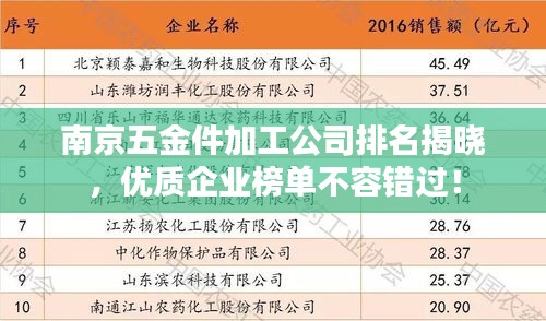 南京,这座历史悠久的城市,不仅是文化古都,也是现代工业的重要基地,五金件加工行业在这里蓬勃发展,众多企业凭借卓越的技术和优质的服务赢得了市场的认可,本文将为您介绍南京五金件加工公司的排名,带您了解这一领域的佼佼者。