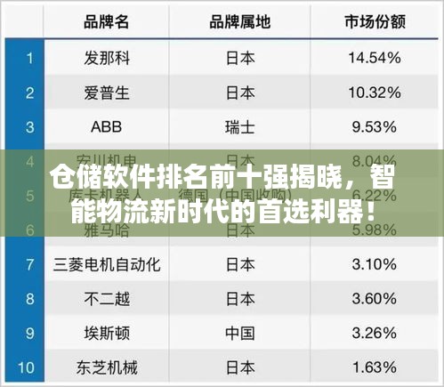 随着电子商务和物流行业的飞速发展,仓储管理软件的需求也日益增长,面对众多的仓储软件,如何选择成为企业和个人关注的焦点,本文将为您介绍仓储软件排名前十名,这些软件凭借出色的性能和服务,成为引领物流新时代的智能之选。