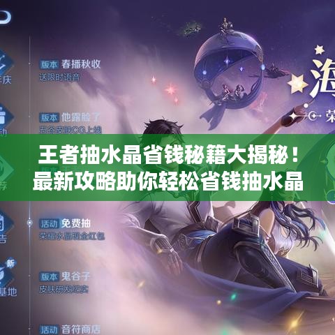 转载请注明来自中国大学生门户网站,本文标题:《王者抽水晶省钱秘籍大揭秘!最新攻略助你轻松省钱抽水晶!》