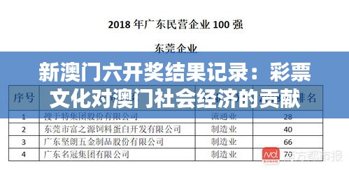 澳门,这座位于珠江三角洲西岸的特别行政区,以其独特的地理位置和深厚的历史文化底蕴,成为了连接中国与世界的桥梁。作为全球著名的旅游休闲中心,澳门的博彩业尤其引人注目,其中,“新澳门六”彩票作为澳门特色彩票之一,不仅在经济上对澳门具有重要意义,更在文化上深刻影响着澳门社会经济的发展。本文将从新澳门六开奖结果记录的角度,探讨彩票文化对澳门社会经济的贡献。