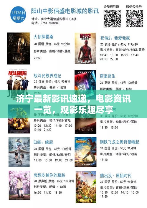 通过本文的介绍,我们了解了最新的济宁今日影讯,无论是喜欢动作片的刺激,还是喜欢爱情片的温馨,都可以在济宁的电影院找到适合自己的影片,在享受观影乐趣的同时,我们也要遵守影院规定,尊重其他观众,保护好自己的个人物品,希望本文能为您的观影之旅提供帮助,让您在济宁的电影市场中尽享观影乐趣。