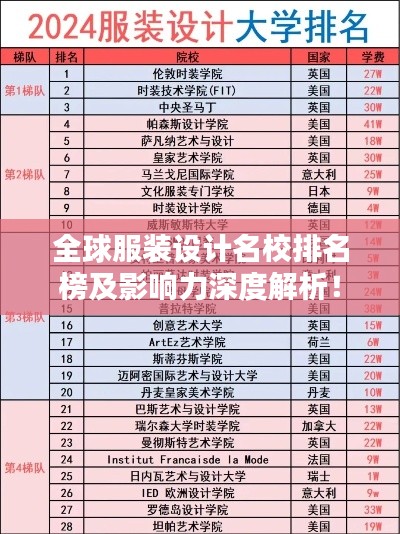 随着时尚产业的飞速发展,越来越多的人对服装设计产生了浓厚的兴趣,纷纷选择进入优秀的服装设计学校学习,本文将为您介绍全球服装设计学校的排名及其影响力。