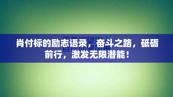 人生之路,充满挑战与机遇,在这条道路上,我们需要励志的话语来鼓舞自己,激发前进的动力,肖付标的励志语录,正是为我们提供了这样一种力量,他的语录,如同明灯,指引我们在黑暗中前行。